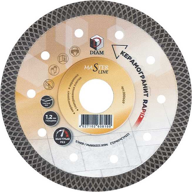 Преимущества алмазного отрезного круга Diam Master Line Turbo Керамогранит Rapid 125 мм: