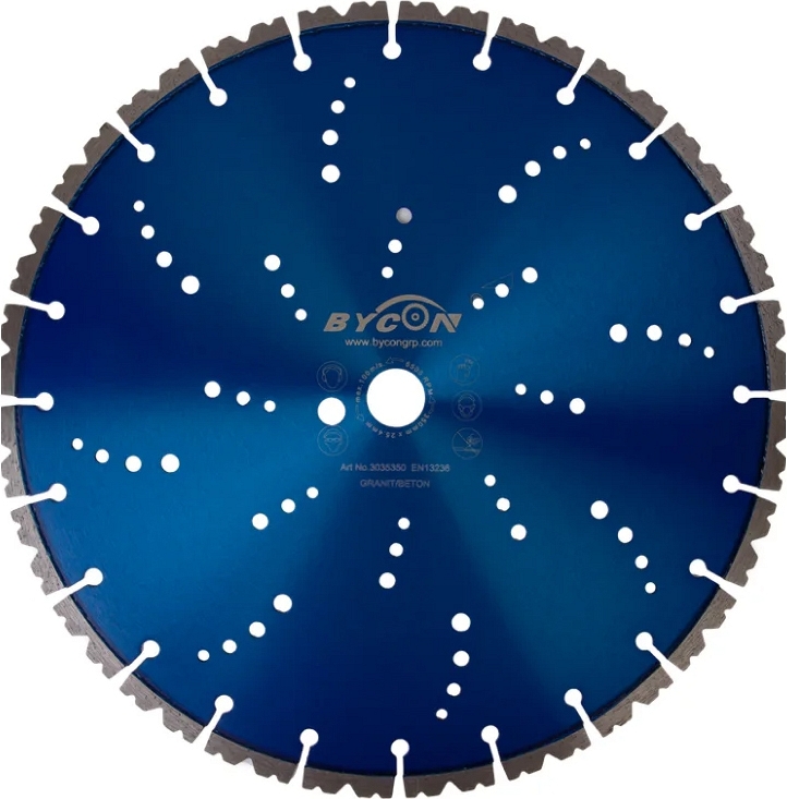 Алмазный сегментный диск Bycon Laser Granit 400 мм (Байкон Лазер Гранит 400 мм) применяется, как правило, на бензорезах, электрических резчиках, камнерезных станках, стенорезных машинах и швонарезчиках. Обрабатываемые материалы: бетон, железобетон, гранит, природный камень, клинкерный кирпич (клинкер) и другие материалы.