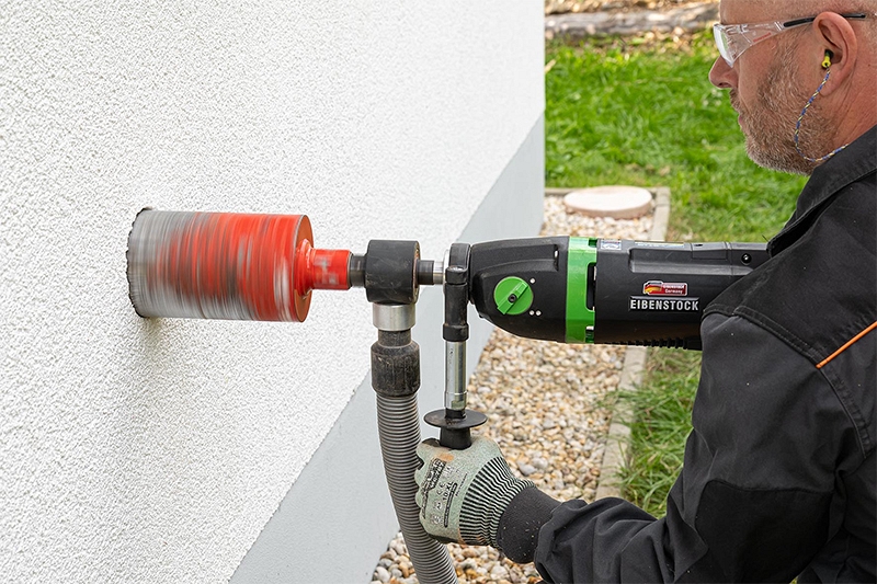 Дрель для сухого алмазного сверления Eibenstock EHD 2002 S (Айбеншток ЕХД 2002 С) предназначена для бурения отверстий Ø 32 – 132 мм в известковом силикатном кирпиче, каменной кладке, клинкерном кирпиче, кирпиче и других абразивных материалах; создания отверстий в стенах и потолках в системах водоснабжения, отопления и вентиляции; вырезания отверстий для электромонтажных коробок, например, для выключателей и распределительных коробок.