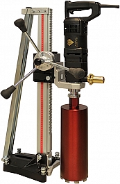 Дрель с микроударом для алмазного бурения Cardi DPH 3000 ME-17 (Карди ДПХ 3000 МЕ-17) – универсальный ручной электрический двигатель для сухого (без подачи воды) и мокрого (с подачей воды) сверления отверстий Ø 32 – 162 мм алмазными коронками в бетоне, железобетоне, бетонных блоках, кирпиче (щелевом, шамотном, силикатном), асфальте, пенобетоне, газобетоне, керамзитобетоне, вулканическом туфе, песчанике, каменной кладке, известняке и многих других строительных и природных материалах как в ручном режиме, так и со стойкой при монтаже сантехники и системы отопления, защитных ограждений и перил, систем кондиционирования, вентиляции, дымоходов, электрики; прокладке слаботочных систем; отборе кернов и многом другом. Идеально подходит для использования с алмазными коронками, требующими сверление с микроударом!