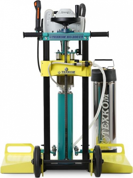 Керноотборник бензиновый для асфальтобетона Техком КО-200 СТ (Tehkom KO-200 ST) – специальная техника для кольцевого алмазного сверления (бурения) отверстий Ø 20 – 280 мм с подачей воды алмазными коронками для отбора стандартных кернов (проб) в асфальтобетоне, асфальте, бетоне и камне для контроля качества дорожных работ при приемке в эксплуатацию вновь построенных или реконструированных автомобильных дорог, при установке дорожных и пешеходных ограждений, знаков, сигнального освещения на взлётно-посадочных полосах, проведении строительных, демонтажных и инженерно-геологических работ.