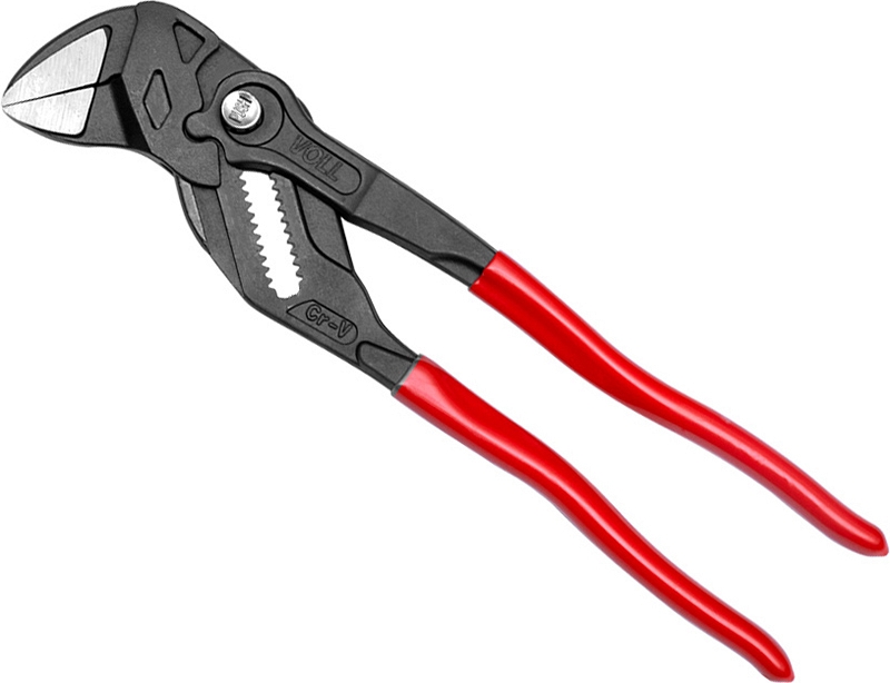 Клещи переставные с кулачковым приводом Voll Cobra 10 (250 мм), CrV (Волл Кобра 10 (250 мм), ЦрВ) предназначены для ремонта и монтажа трубопровода и сантехники, а также в других строительных работах, где необходимо зажимать предметы разного диаметра до 48 мм.