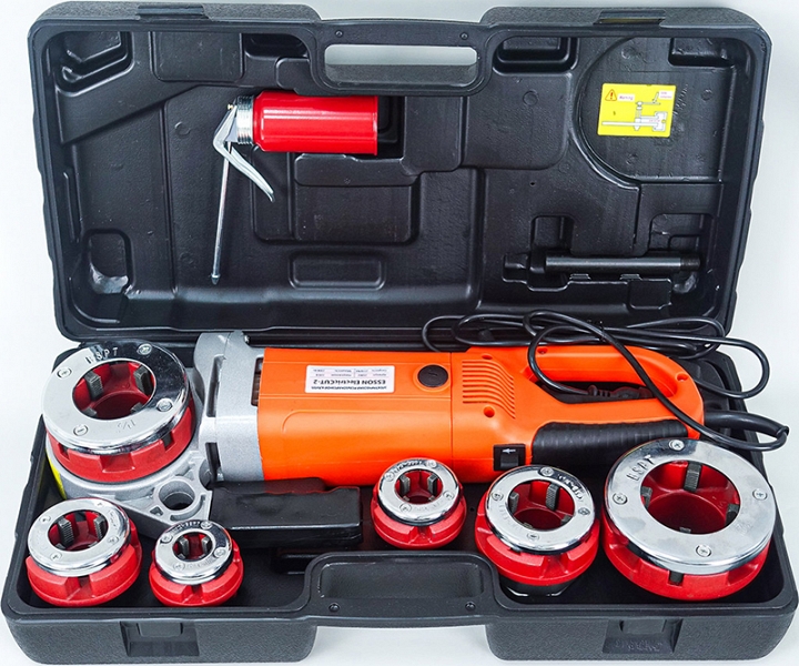 Клупп электрический резьбонарезной Esson ElectricCut-2 (Эссон ЭлектрикКат-2) предназначен для нарезки правой трубной конической резьбы BSPT R на различных водопроводных, электрических, газовых, стальных трубах Ø 1/2", 3/4", 1", 1 1/4", 1 1/2", 2" при монтаже оборудования и в строительной промышленности.