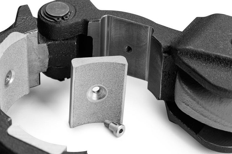 - Специальный дизайн поверхности вкладышей оптимизирует силу захвата, одновременно минимизируя абразивное изнашивание трубы