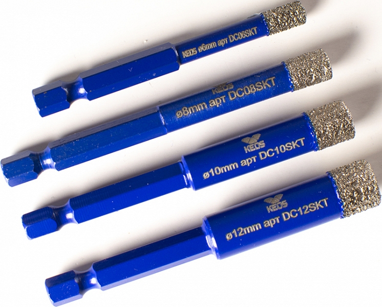 Преимущества коронки алмазной по керамограниту Keos Professional Vacuum Brazed 1/4" HEX 12 мм: