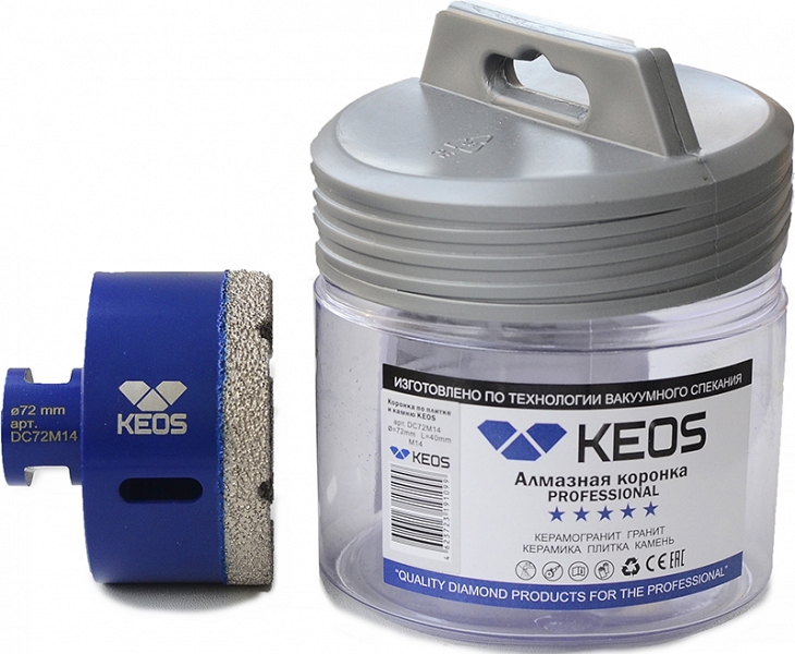 Цена и технические характеристики коронки алмазной по керамограниту Keos Professional Vacuum Brazed M14 72 мм: