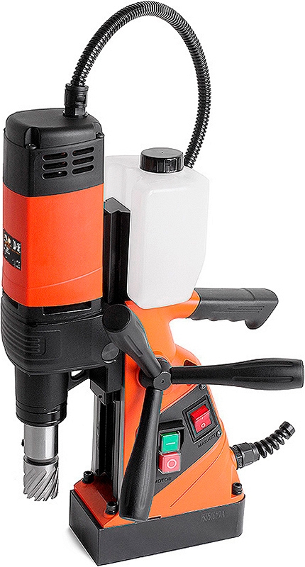 - Для качественного сверления и сохранения ресурса кольцевых сверл, предусмотрена регулируемая подача смазочно-охлаждающей жидкости (СОЖ)