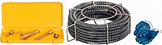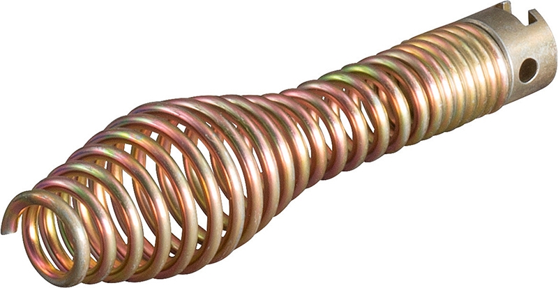 Сверхгибкие для легкой тяги даже в тесных трубах. Быстрым соединением молниеносно удлиняются и сокращаются. Т-образный паз с защитной блокировкой. Ручная подача. Спираль для чистки труб, стандартная для универсальных работ, сверхгибкая, специальная спираль предназначена для узких или нескольких следующих друг за другом изгибов труб. Спираль для прочистки трубы S с толстой специальной проволокой для особенно тяжело устраняемых засоров, например, для разрезания корней. Привод Кобра 32 или для приводов других производителей. - Зажимы для спиралей: