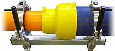 - Конструкция: прямая штанга с 2-мя поворотными хомутами, для сварки 2-х труб, расположенных соосно или под углом друг к другу, фитингом, имеющим 2 раструба, с закладным нагревателем