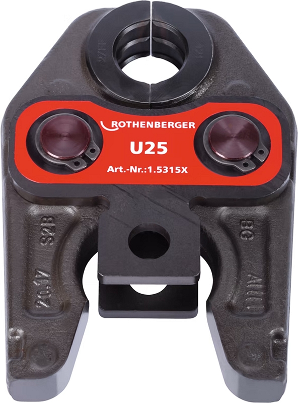 Пресс-клещи Rothenberger Standard U25 (Ротенбергер Стандарт У25) проверенного качества, ориентированные на пресс-фитинговые и трубные системы обжима пластиковых из сшитого полиэтилена (PE-X) и металлопластиковых (МПТ) труб Ø 25 мм различных производителей. Предназначены для аккумуляторных и электрических гидравлических радиальных прессов Rothenberger Romax 4000 / 3000 AC / AC Eco.