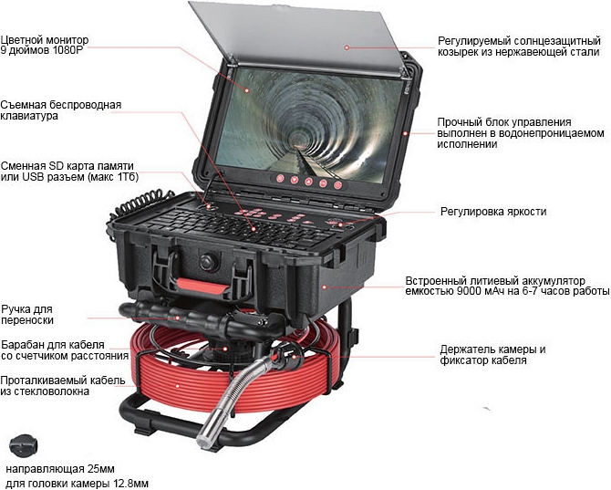 - Проталкиваемая телеинспекционная система Rotorica Pipe Eye 30/129:
