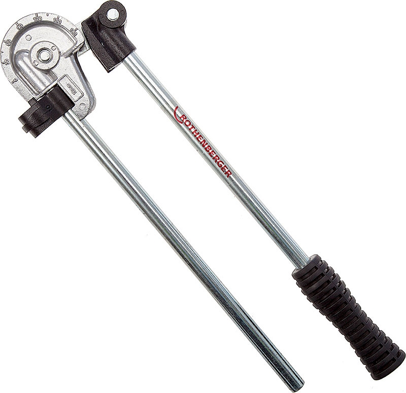Ручной рычажный трубогиб Rothenberger 12 мм (Ротенбергер 12 мм) предназначен для точной холодной гибки двумя руками алюминиевых, мягких медных и тонкостенных стальных труб Ø 12 мм на угол до 180° в мастерских и на стройплощадках при монтаже разнообразных систем пневматики и гидравлики, вентиляции и кондиционирования, а также в машиностроении и холодильной технике.