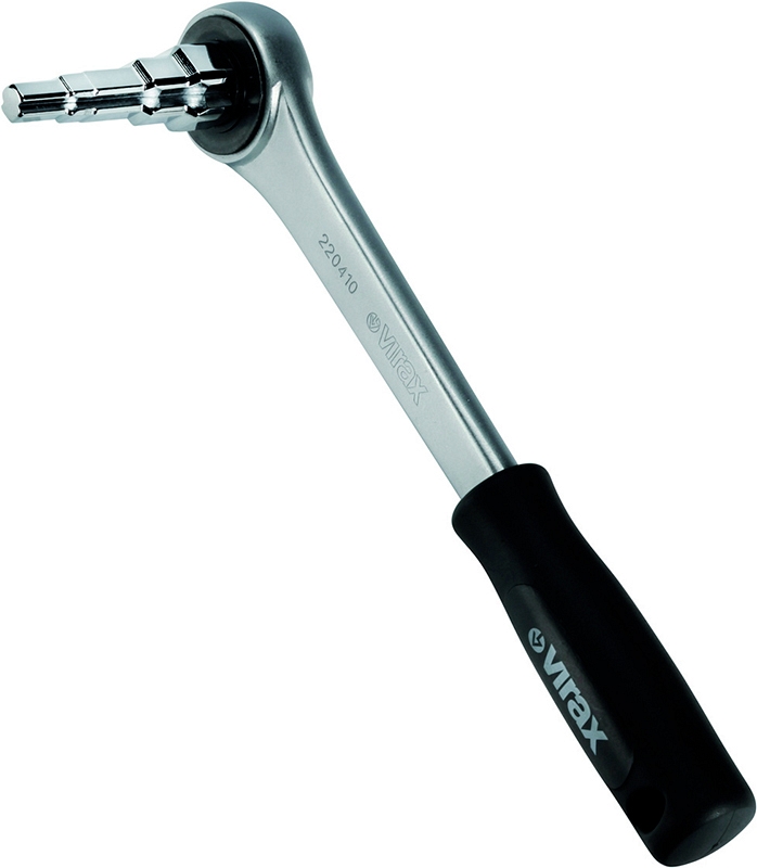 Универсальный шестигранный ступенчатый ключ для американок с трещоткой Virax 3/8"-1/2"-3/4"-1" (10-12-13-17-22 мм) (Виракс 3/8"-1/2"-3/4"-1" (10-12-13-17-22 мм)) предназначен для монтажа и демонтажа радиаторных ниппелей и коротких крановых удлинителей.