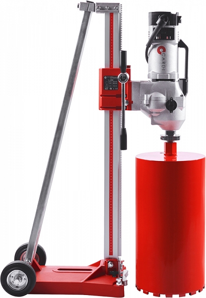Установка алмазного бурения Cardi 250 (Карди 250) предназначена для алмазного сверления отверстий Ø 50 – 300 мм (2" – 12") алмазными сверлильными коронками в бетоне, железобетоне с любой степенью армированности, а также Ø 30 – 350 мм (1 1/4" – 14") в асфальте, кирпичной и камненной кладке и т.д. с подачей воды.