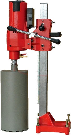 Установка алмазного бурения Saturn OB-205 (Сатурн ОБ-205) предназначена для сверления круглых отверстий Ø 20 – 205 мм в бетонных, железобетонных, базальтовых, асфальтовых и других поверхностях под трубы вентиляции, теплоснабжения, водоснабжения и подобных коммуникаций.